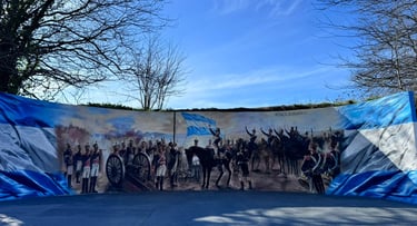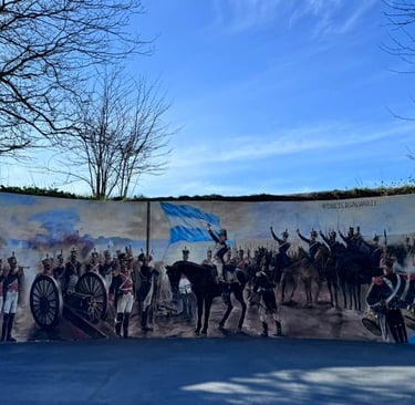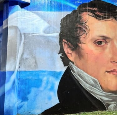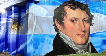 El mural fue diseñado en el año 2024 por los artistas matias gonzalez y juan perez, esta obra de arte es una recreación del momento en que el Gral. Manuel Belgrano enarbola la bandera en Rosario. Obra del artista español Eugenio Álvarez Dumont (Túnez, 1864 Bs. As, 1927).