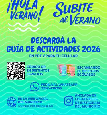 En el dia de hoy, la municipalidad de Gral. Belgrano presento un programa de eventos y actividades para que disfruten grandes y chicos, una variada oferta como cine, obras de teatros, plazas blanda en casa de la cultura, actividades en el Museo, circo en los parajes rurales, torneos de futbol, voley, basquet, torneos de FiFa, espectáculo de magia, espectáculo de magia, suelta de libros, visitas guiadas en el Bosque Encantado y Museo, como así tambien y cicloturismo en la zona balnearia.