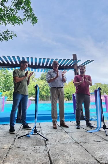 Ayer por la mañana el Intendente Osvaldo Dinapoli, junto al Secretario de Desarrollo Sustentable Ramiro Bonini y el Subsecretario de Turismo Martín Neira, dejaron inaugurada la Temporada de Verano 25/26, con la tradicional bendición de las Aguas del Río Salado y de la Pileta Municipal, efectuada por el Padre Juan María Menchacabaso.
